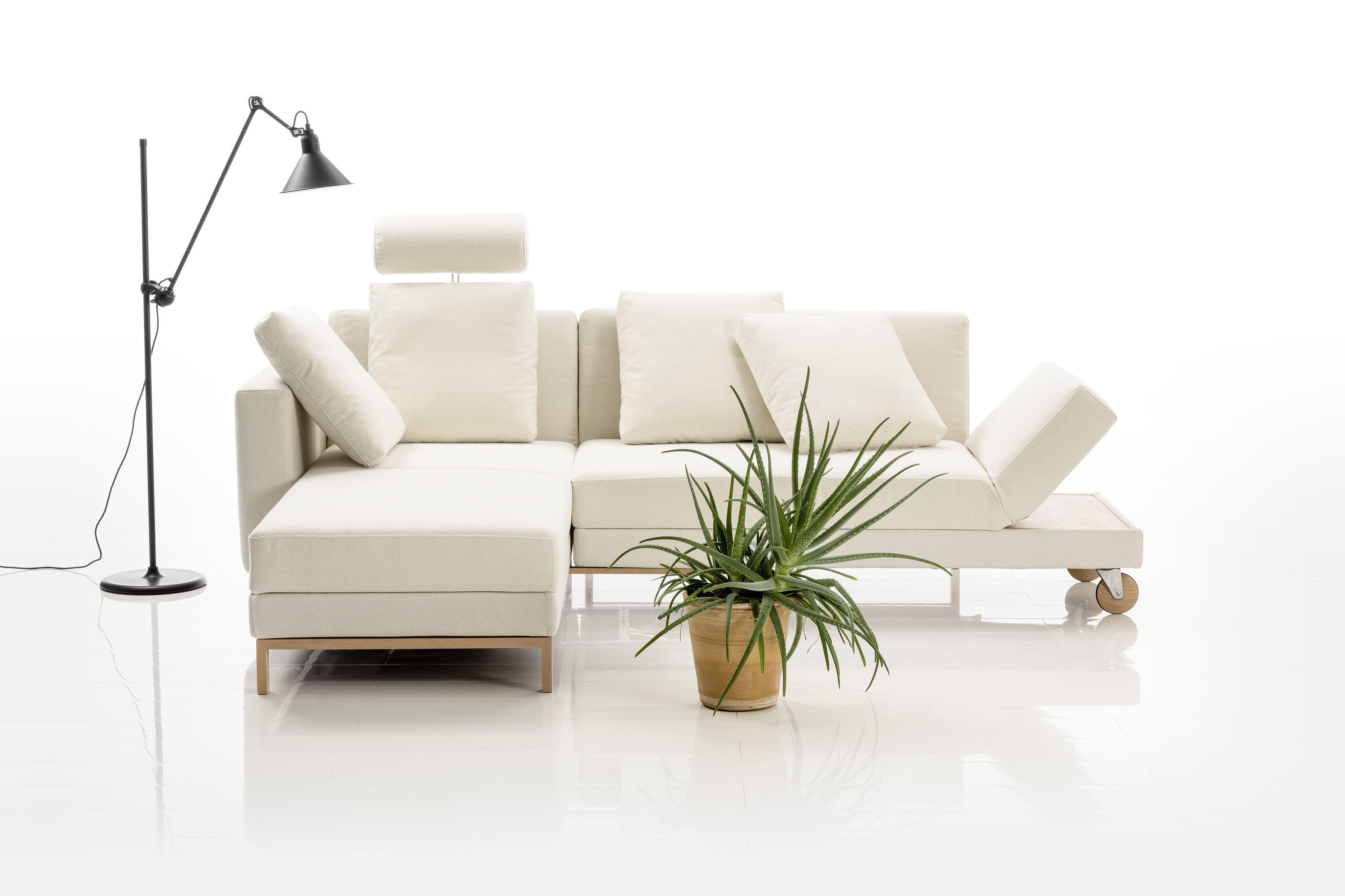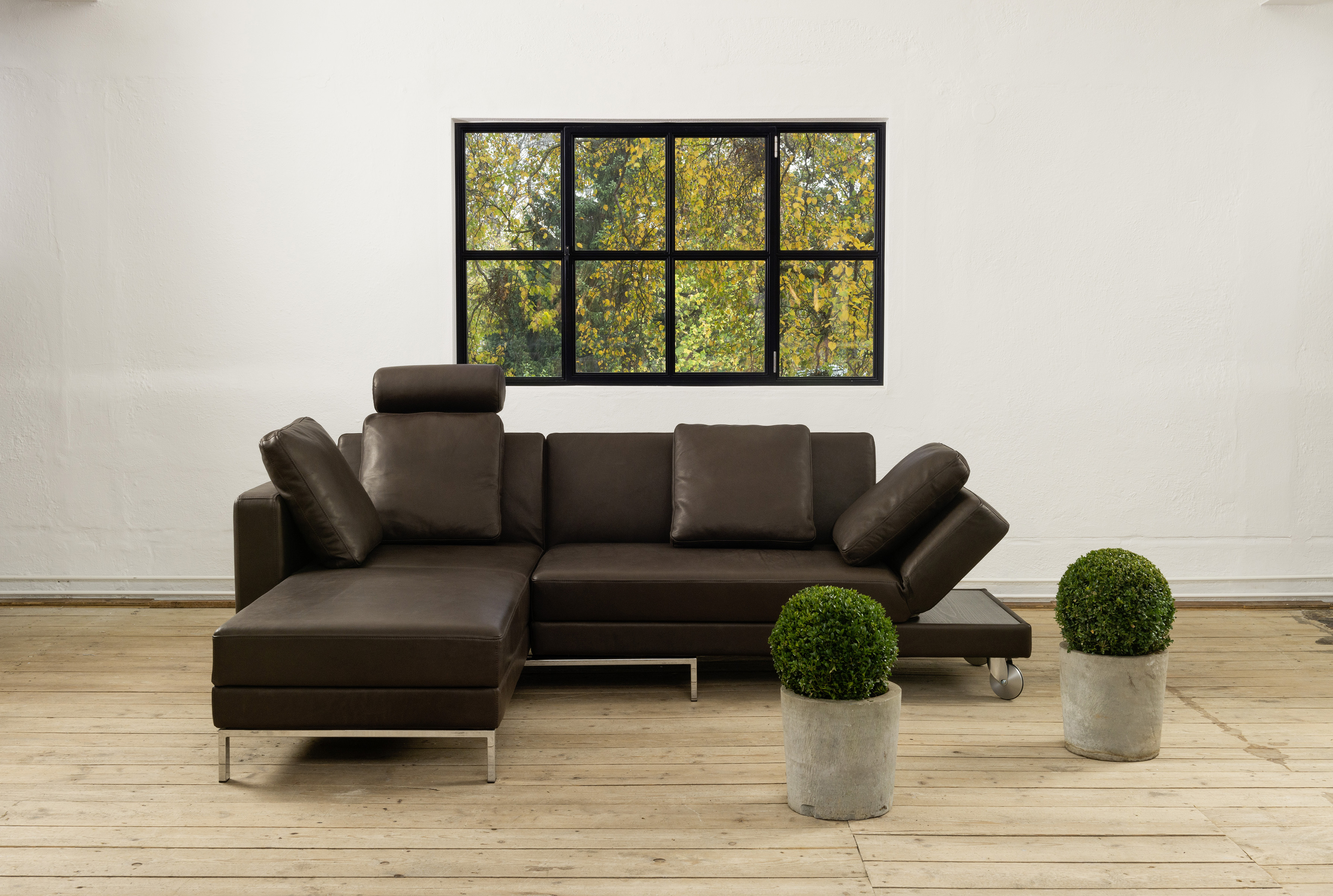 Typisch für brühl ist die Verbindung von Komfort und Funktion. Viele Sofas lassen sich mit wenigen Handgriffen verwandeln: von der eleganten Sitzlandschaft zur großzügigen Relaxzone, vom Sofa zur Liege. Raffinierte Rücken- und Armlehnenmechaniken eröffnen neue Möglichkeiten des Sitzens, Anlehnens und Entspannens – ganz nach Stimmung und Anlass. Auch bei Sesseln und Einzelmöbeln zeigt sich diese Vielseitigkeit. Ob drehbar, verstellbar oder bewusst reduziert: brühl denkt Sitzkomfort ganzheitlich und immer aus der Perspektive des Menschen heraus.